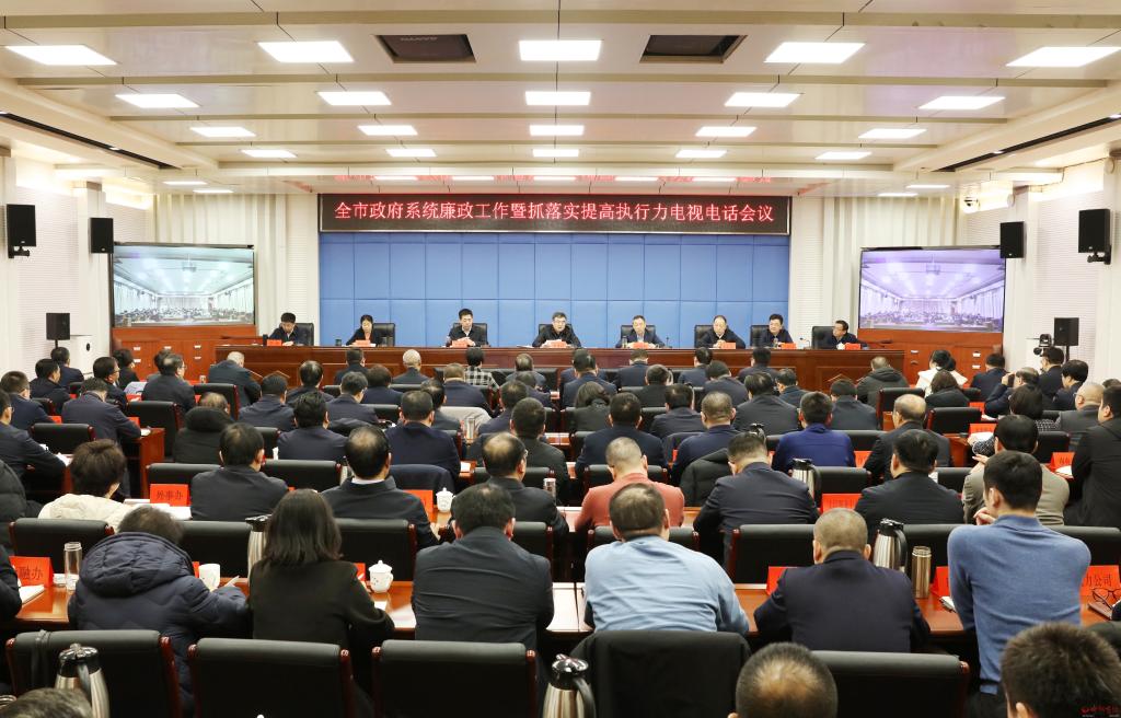 本報訊 (記者任逢春)2月22日,全市政府系統(tǒng)廉政工作暨抓落實(shí)提高執(zhí)行力會議召開,深入學(xué)習(xí)貫徹習(xí)近平總書記關(guān)于黨的自我革命的重要思想,全面貫徹黨中央國務(wù)院、省委省政府、省紀(jì)委和市委的系列會議安排,對縱深推進(jìn)政府系統(tǒng)黨風(fēng)廉政建設(shè)和反腐敗斗爭工作進(jìn)行安排部署,號召全市政府系統(tǒng)振奮精神、擔(dān)當(dāng)作為,全面提升重實(shí)干、強(qiáng)執(zhí)行、抓落實(shí)的實(shí)踐成效,不斷開創(chuàng)全市高質(zhì)量發(fā)展、全方位轉(zhuǎn)型和現(xiàn)代化建設(shè)新局面。市委副書記、市長李建國出席會議并講話。市委常委、常務(wù)副市長趙新年主持會議。市委常委、市紀(jì)委書記、市監(jiān)委代主任王建江,副市長史紅波、賈玲香、王建峰、李碩,市政府秘書長張艮生出席。
