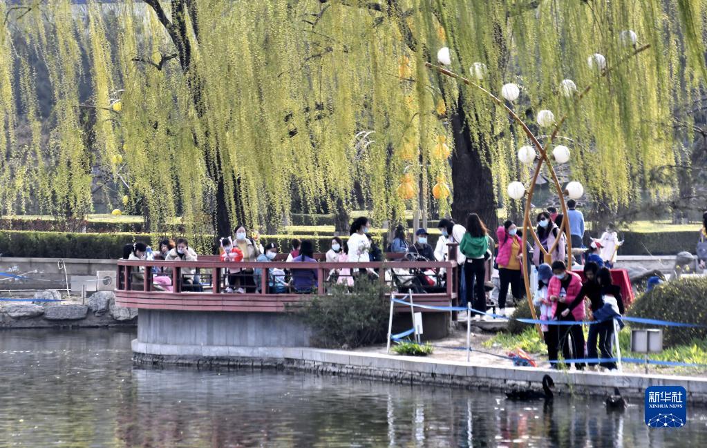 4月4日,市民在豐臺區(qū)世界花卉大觀園內(nèi)休閑踏青。(新華社記者 李欣 攝)