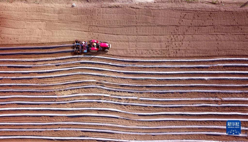 在江蘇省連云港市朝陽街道韓李村,農(nóng)民在田間勞作(4月4日攝)。(新華社發(fā) 王春 攝)