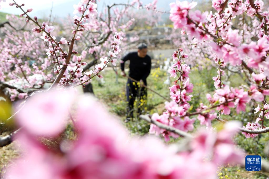 農(nóng)民在河南省洛陽市汝陽縣柏樹鄉(xiāng)布嶺村農(nóng)田作業(yè)(4月1日攝)。(新華社發(fā) 康紅軍 攝)