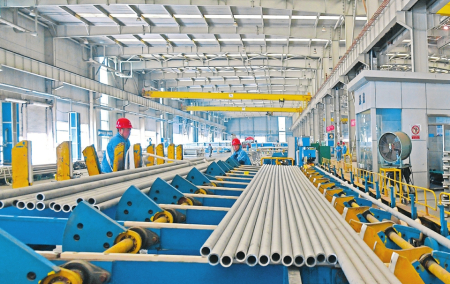 巨大的生產(chǎn)車間內(nèi),機(jī)器轟鳴,一根根坯料經(jīng)過穿孔、酸洗、拋光、冷軋等近40道工序,變成锃亮堅(jiān)固的不銹鋼管,發(fā)往國內(nèi)外企業(yè),成為電站、鐵路、新能源、油氣開采等行業(yè)的重要材料。在山西太鋼不銹鋼鋼管有限公司,一系列特色管材產(chǎn)品實(shí)現(xiàn)了在重大裝備上的突破性應(yīng)用,提高了太鋼鋼管產(chǎn)品的美譽(yù)度和競(jìng)爭(zhēng)力。