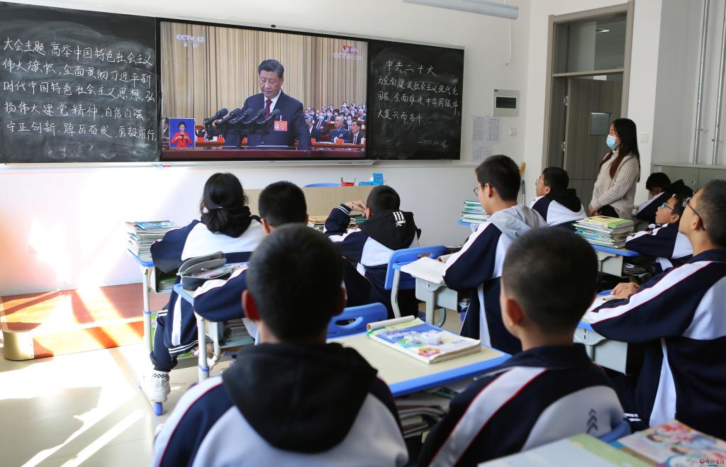 忻州市第一中學的校園處處洋溢著歡快、自豪的氣氛,師生們通過不同渠道,共同見證著這一歷史時刻??赐曛辈ズ?,教師劉津帆意猶未盡。她說:“前不久,我們剛剛迎來建校120周年華誕,如今,又喜迎黨的二十大勝利召開,心中的歡欣鼓舞、自豪之情真是無以言表。作為一名人民教師,要始終牢記為黨育人、為國育才的光榮使命,堅決執(zhí)行黨中央的教育方針政策,培根鑄魂,啟智潤心,培養(yǎng)德智體美勞全面發(fā)展的社會主義建設者和接班人?!?/p>
