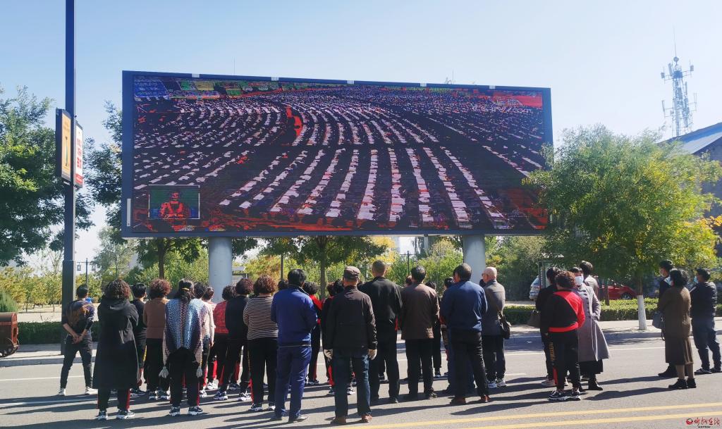 忻州城區(qū)市民在街頭大屏幕收看大會。楊貴明 攝