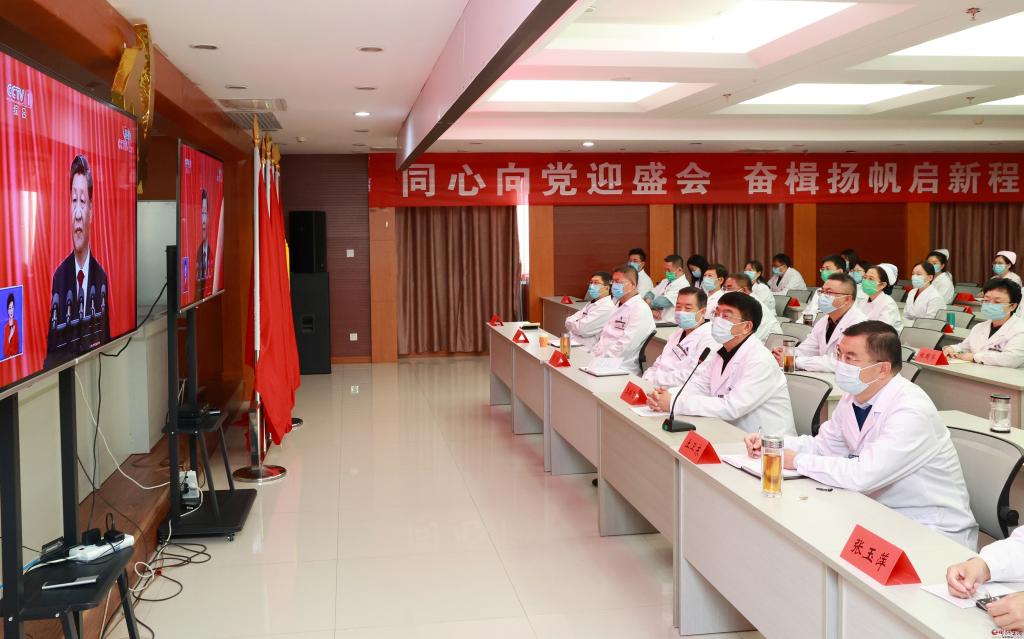 市人民醫(yī)院組織醫(yī)護人員收看。張存良 攝