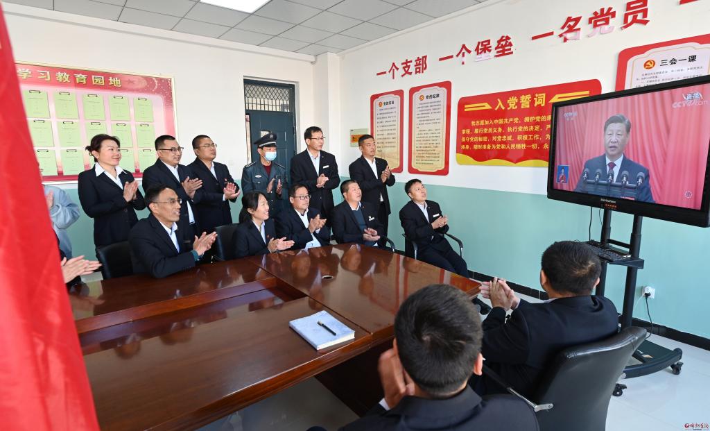 山西寧武大運華盛能源集團有限公司及各煤業(yè)公司、二級子公司組織觀看了開幕會盛況直播。與會人員一邊聆聽報告,一邊做著筆記?!傲暯娇倳浰鞯墓ぷ鲌蟾婕冉o出了過去五年的亮眼‘成績單’,也科學謀劃了未來5年乃至更長時期黨和國家事業(yè)發(fā)展的目標任務和大政方針。”集團公司媒體中心副主任劉強說“,我將認真學習領會貫徹黨的二十大精神,全面提高理論水平、專業(yè)能力和實踐本領,立足本職崗位,做好本職工作,以新作為交出新答卷?!?/p>