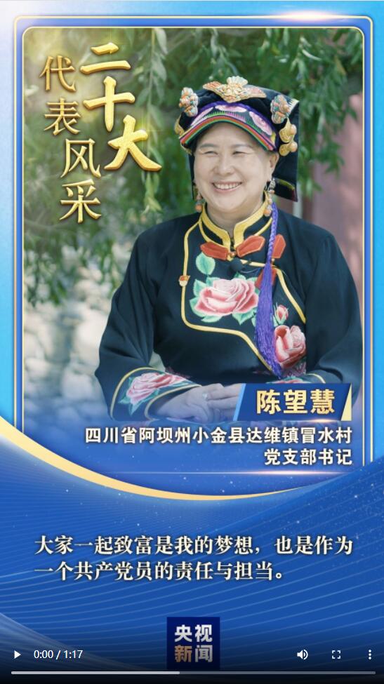 “二十大代表風(fēng)采”一起來認(rèn)識四川省阿壩州小金縣達(dá)維鎮(zhèn)冒水村黨支部書記陳望慧。