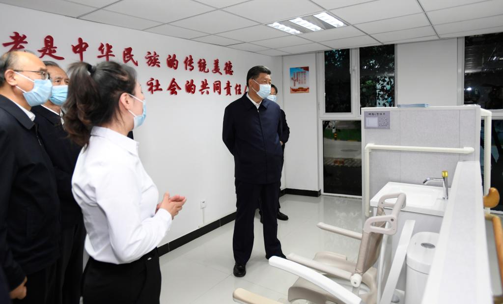 2021年8月24日,習(xí)近平總書記在河北省承德市濱河社區(qū)居家養(yǎng)老服務(wù)中心察看適老化改造等項目。新華社記者 李學(xué)仁 攝