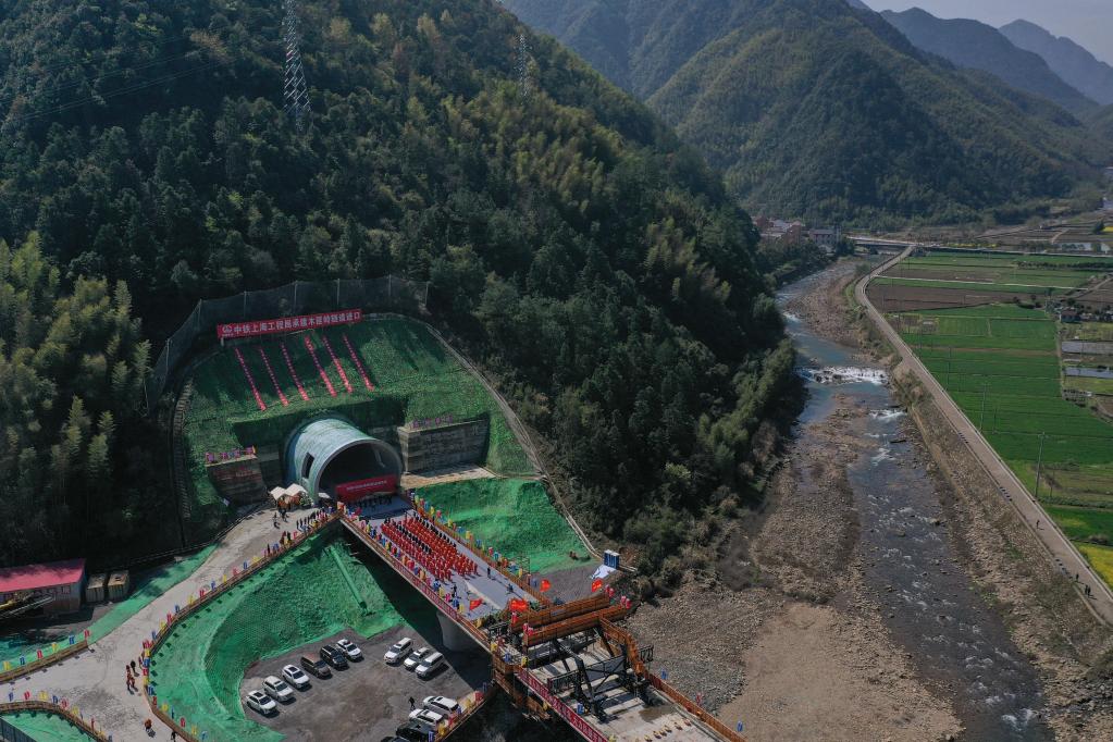 3月26日,杭溫鐵路二期項目最長隧道——木匪嶺隧道順利貫通。新華社記者黃宗治 攝