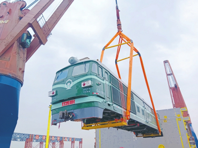 東風4B內燃機車體作為中國鐵路第二代電傳動內燃機車的代表車型,是中國鐵路史上產量最大、運用最廣泛、技術最成熟的內燃機車車型之一。因車體單件長達22米、重達87噸,且沒有固定吊點、重心難尋,致使其吊裝不同于以往發(fā)運貨類,吊裝過程極易出現傾斜等情況,吊裝難度系數極高,需兩臺船吊采用“兜吊”的軟吊方式進行作業(yè),這對作業(yè)司機的操作提出了極高的要求,必須做到“三個同步”:兩臺船吊起吊高度同步、起升速度同步、轉向頻率同步。