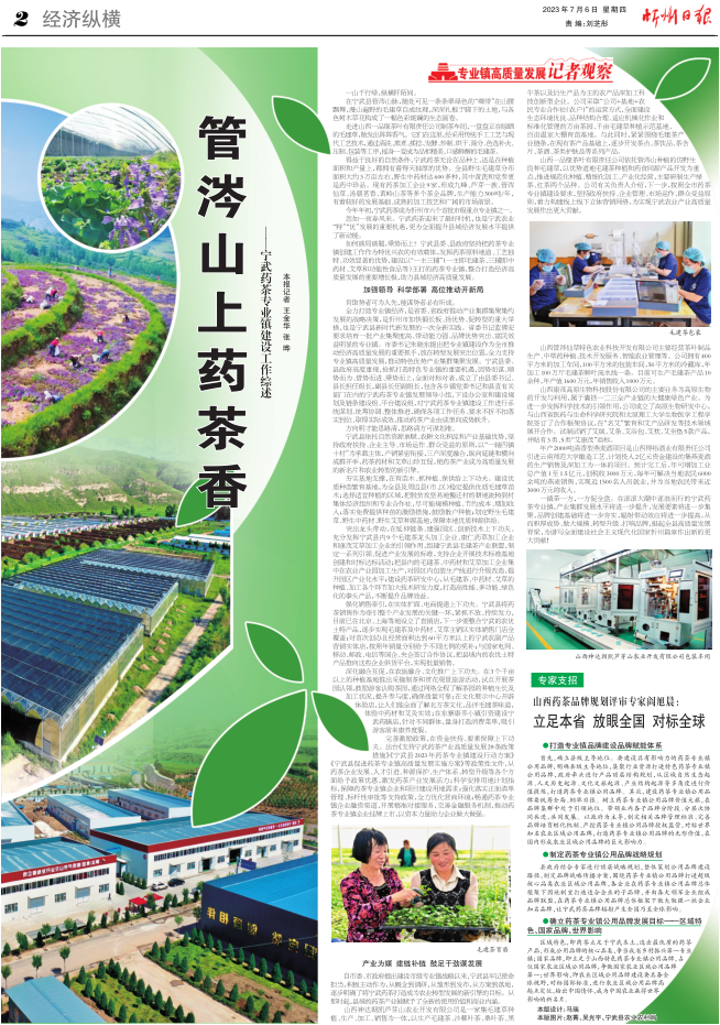 為促進寧武藥茶專業(yè)鎮(zhèn)高質量發(fā)展,寧武縣以優(yōu)質資源要素為支撐,堅持政府扶持、企業(yè)管理、市場運作、整合推進的原則,全縣實施包括“市場主體倍增”“創(chuàng)新能力提升”“就業(yè)富民賦能”“質量品牌提升”“銷售市場拓展”“重大項目攻堅”和“產(chǎn)業(yè)要素保障”等在內(nèi)的七大行動,以1軸4鎮(zhèn)10村為承載主體,產(chǎn)銷緊密銜接,三產(chǎn)深度融合,縱向延鏈和橫向成群并舉,藥茶藥材和功能食品互促,推動藥茶產(chǎn)業(yè)由成型向成勢躍升。