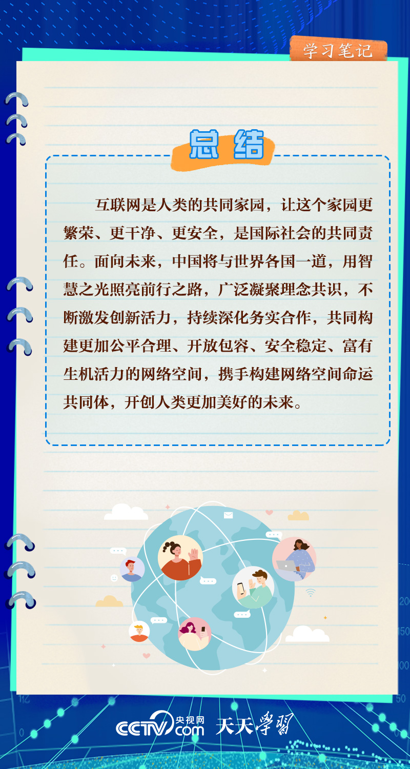 天天學(xué)習(xí)“互聯(lián)網(wǎng)發(fā)展是無國界、無邊界的,利用好、發(fā)展好、治理好互聯(lián)網(wǎng)必須深化網(wǎng)絡(luò)空間國際合作,攜手構(gòu)建網(wǎng)絡(luò)空間命運(yùn)共同體?!泵鎸?duì)日益發(fā)展擴(kuò)大的網(wǎng)絡(luò)空間,習(xí)近平主席倡導(dǎo)構(gòu)建網(wǎng)絡(luò)空間命運(yùn)共同體,為推動(dòng)全球網(wǎng)絡(luò)空間互聯(lián)互通、共享共治注入中國智慧。