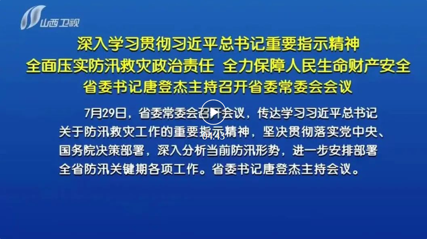 7月29日,省委常委會(huì)召開(kāi)會(huì)議,傳達(dá)學(xué)習(xí)習(xí)近平總書(shū)記關(guān)于防汛救災(zāi)工作的重要指示精神,堅(jiān)決貫徹落實(shí)黨中央、國(guó)務(wù)院決策部署,深入分析當(dāng)前防汛形勢(shì),進(jìn)一步安排部署全省防汛關(guān)鍵期各項(xiàng)工作。省委書(shū)記唐登杰主持會(huì)議。