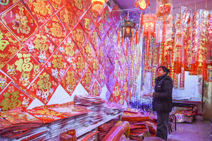1月19日,市民在北京一商場內(nèi)選購春節(jié)裝飾品。新華社記者李欣攝