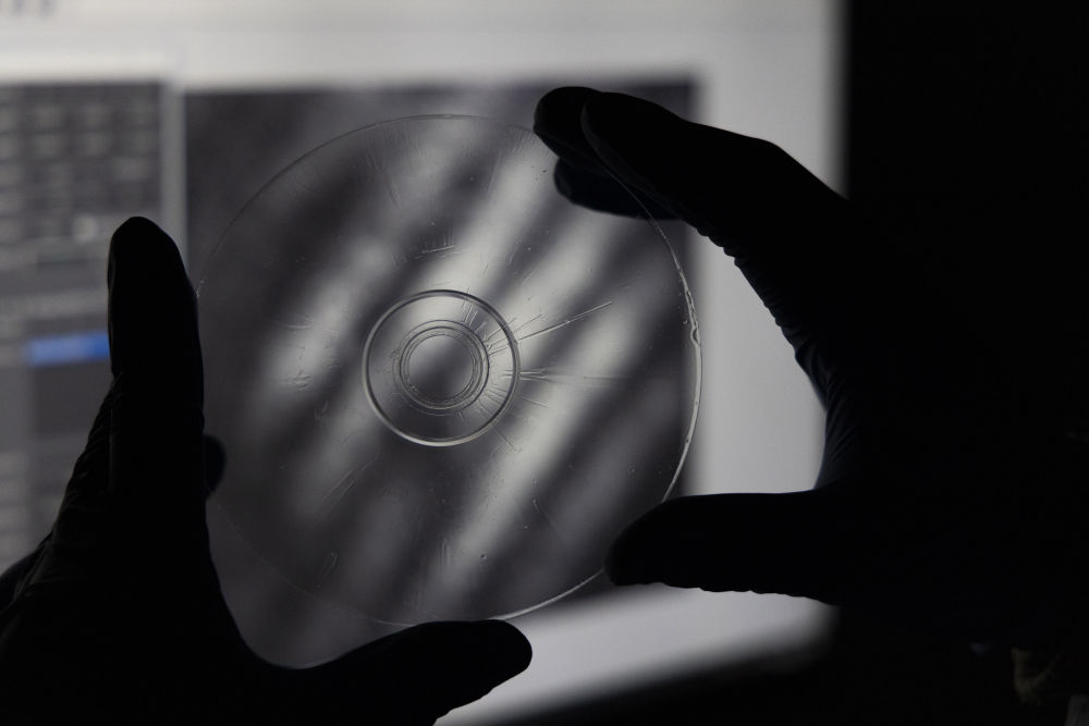 2024年2月29日在上海光機(jī)所光學(xué)實(shí)驗(yàn)室拍攝的“超級(jí)光盤”。2月21日,中國(guó)科學(xué)院上海光學(xué)精密機(jī)械研究所對(duì)外宣布存儲(chǔ)容量是普通光盤上萬(wàn)倍、普通硬盤上百倍的“超級(jí)光盤”誕生。據(jù)計(jì)算,十幾張“超級(jí)光盤”就可以存儲(chǔ)下整個(gè)國(guó)家圖書館的數(shù)據(jù)量。