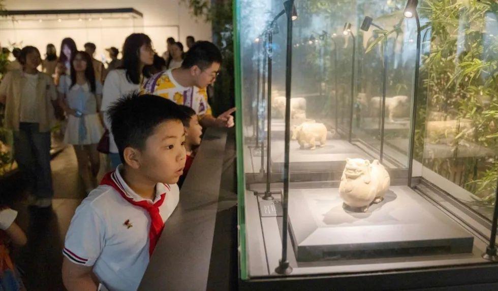 踏入博物館,從東晉的俑群、南朝的青瓷蓮花尊中,觀眾能感受到歷史的溫度;當志愿者們聲情并茂地講述1000多年前的歷史時,觀眾也被帶入到遙遠的時空隧道中,與嵇康飲酒,與王羲之對話。
