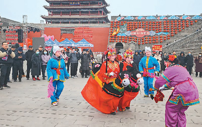 忻州古城南城門(mén)前的快閃表演。石薦文攝