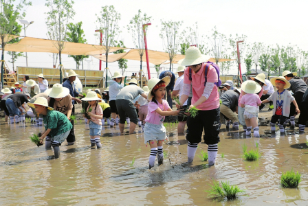 5月28日,太原市晉源區(qū)晉祠水稻插秧節(jié)在稻田公園舉行?;顒?dòng)現(xiàn)場(chǎng),機(jī)器轟鳴、水波蕩漾,自動(dòng)化插秧機(jī)勻速前進(jìn),水田里留下一簇簇新綠。卷褲腳、戴草帽、踏稻田、插秧苗、踩泥巴、捉魚蝦……一群群研學(xué)的孩子分批下田,感受手工插秧的樂趣,細(xì)嗅農(nóng)耕勞作的氣息。田埂上圍觀群眾的加油聲、喝彩聲不絕于耳,現(xiàn)場(chǎng)一片熱火朝天。