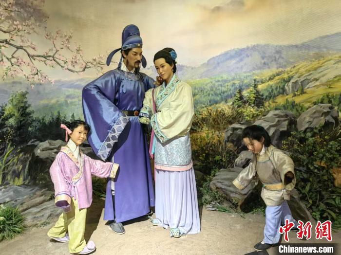安陸李白紀(jì)念館內(nèi)的李白與許氏夫人蠟像。 記者 艾啟平 攝