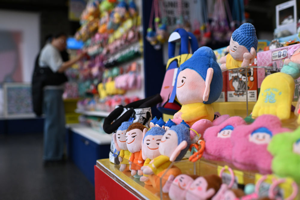 4月16日,游客在山西大同云岡石窟文創(chuàng)空間選購文創(chuàng)產(chǎn)品。歷經(jīng)滄桑