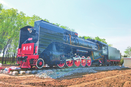 如今,大東溝成了煤礦生產(chǎn)設(shè)備的“露天博物館”,陳列著井下使用過的綜采支架、掘進(jìn)機(jī)、齒軌車、風(fēng)機(jī)、高壓開關(guān)、移動(dòng)變電站、礦用潛水泵等40余種、近300件設(shè)備,為中國煤礦不同歷史發(fā)展階段保留了珍貴標(biāo)本。其中,有兩處展品更為引人注目:一是一臺(tái)時(shí)速80公里、牽引力324千牛的前進(jìn)型蒸汽機(jī)車,1975年由大同機(jī)車廠生產(chǎn),1994年由潞安集團(tuán)統(tǒng)一安排承擔(dān)石圪節(jié)煤礦和兄弟礦井的煤炭外運(yùn)及漳澤電廠的煤炭直送任務(wù),是潞安集團(tuán)首批鐵路運(yùn)輸牽引機(jī)車,直到2007年機(jī)車轉(zhuǎn)型升級(jí)后停用。如今,這臺(tái)蒸汽機(jī)車已經(jīng)成為一代人的記憶,也是不少人打卡的網(wǎng)紅地標(biāo)。還有一處是給人留下深刻印象的軌道墻。兩道長6米的水泥墻,墻體里鑲嵌著從石圪節(jié)井下運(yùn)上來的標(biāo)有不同年代的道軌,如產(chǎn)于1902年的德國道軌、產(chǎn)于1905年的比利時(shí)道軌、產(chǎn)于1915年的由漢陽鐵廠制造的道軌等。這些標(biāo)有生產(chǎn)年代的道軌,當(dāng)年在井下作為支撐物或巷道頂棚使用,如今成為石圪節(jié)煤礦發(fā)展歷程的見證,默默地向人們?cè)V說石圪節(jié)開采歷史的久遠(yuǎn)。