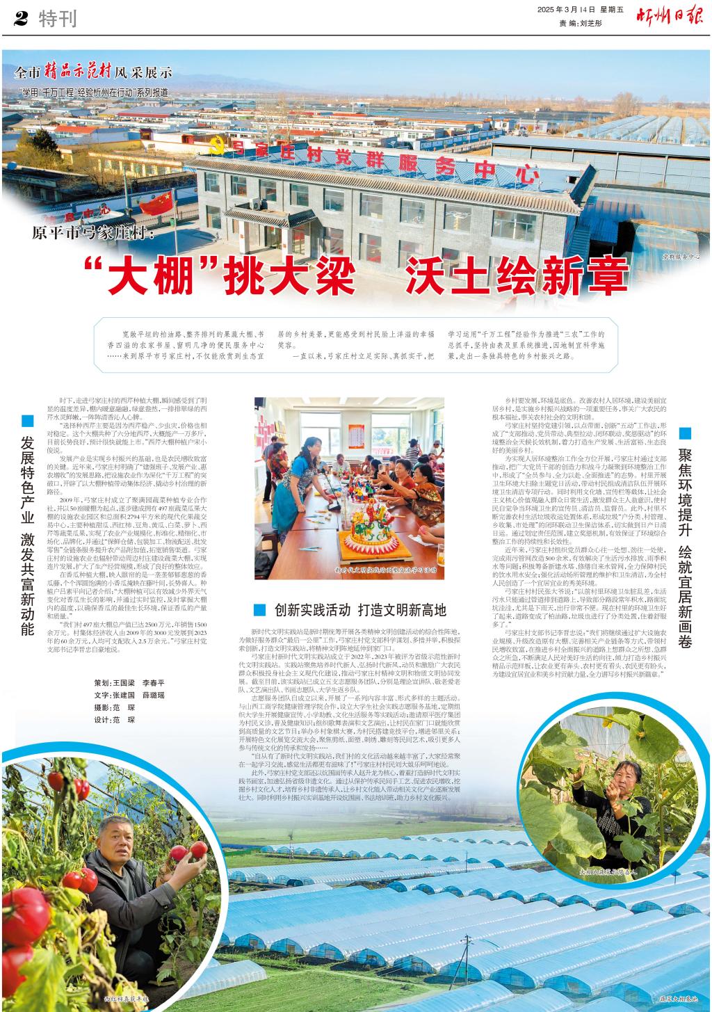 寬敞平坦的柏油路、整齊排列的果蔬大棚、書香四溢的農(nóng)家書屋、窗明幾凈的便民服務中心……來到原平市弓家莊村,不僅能欣賞到生態(tài)宜居的鄉(xiāng)村美景,更能感受到村民臉上洋溢的幸福笑容。