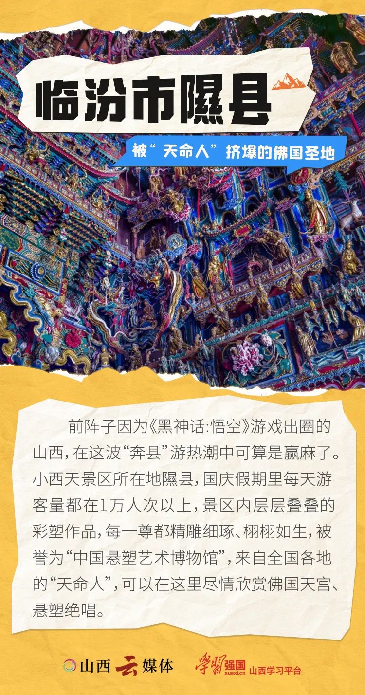 10月18日,山西黃河、長(zhǎng)城、太行三個(gè)一號(hào)旅游公路全線(xiàn)貫通,覆蓋全省113個(gè)縣(市、區(qū)),把全省531處國(guó)保級(jí)建筑、779處省保級(jí)建筑、976個(gè)旅游景區(qū)景點(diǎn)全部連通。近日,“奔縣”游成為“城會(huì)玩”的年輕人的新選擇,這個(gè)深秋,跟著我們一起來(lái)山西,看看那些令人驚艷的寶藏小城,開(kāi)啟一段發(fā)“縣”之旅。