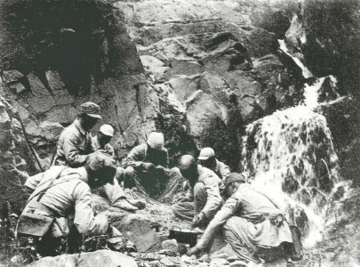 八路軍某部和群眾一起采集樹葉充饑,堅(jiān)持抗戰(zhàn)。