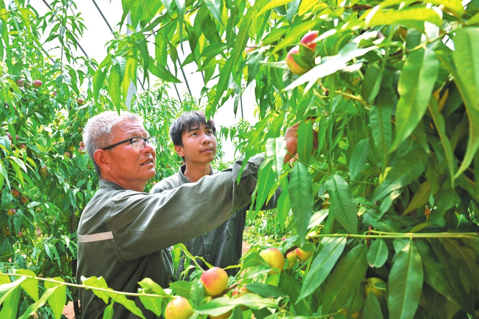 在三新模式示范園里,智慧農(nóng)業(yè)設(shè)備實(shí)時(shí)監(jiān)測(cè)土壤墑情,機(jī)械化修剪機(jī)正在作業(yè)?!耙郧翱刻斐燥?,現(xiàn)在靠科技增收?!奔h(yuǎn)杰擦著汗說。這片曾經(jīng)的荒坡地,如今已成為集種植、加工、觀光于一體的現(xiàn)代農(nóng)業(yè)示范園,通過建立良好的“公司+基地+農(nóng)戶”運(yùn)行機(jī)制,帶動(dòng)周邊5村280戶年均增收3000元至5000元,村集體經(jīng)濟(jì)增收3萬(wàn)余元。